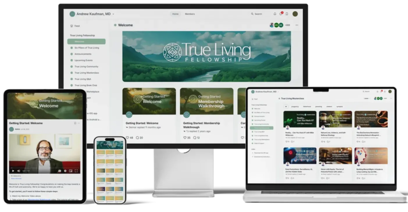 Our True Living Fellowship is Dr. Kaufman’s private community for sovereign-minded humans living in alignment with health, truth, and freedom.Â